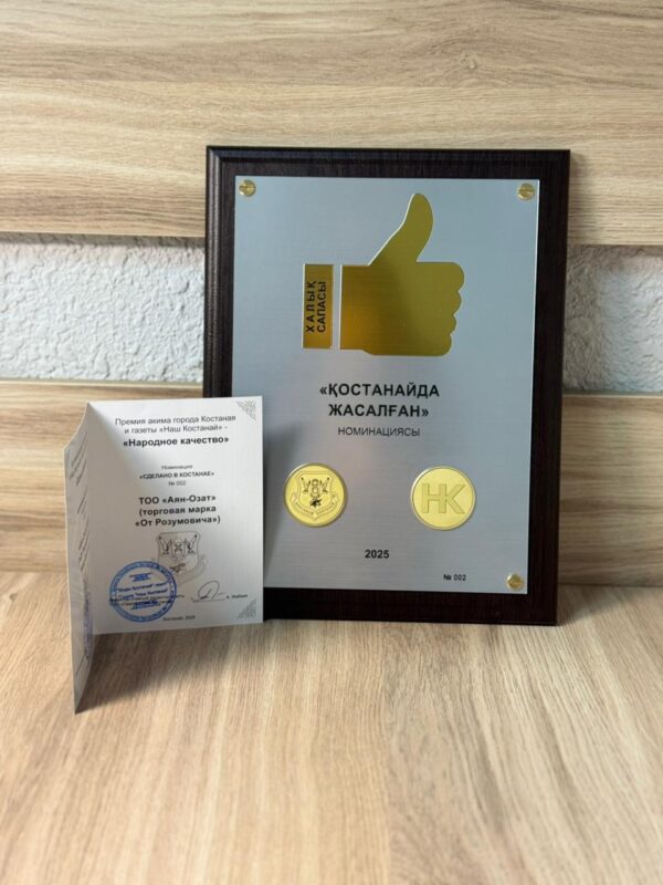 23 октября 2025 года ТОО «Аян-озат» ТМ «от Розумовича» получили награду «Народное качество» В престижной рубрике «Сделано в Костанае» наша продукция была признана лучшей уже во второй раз!