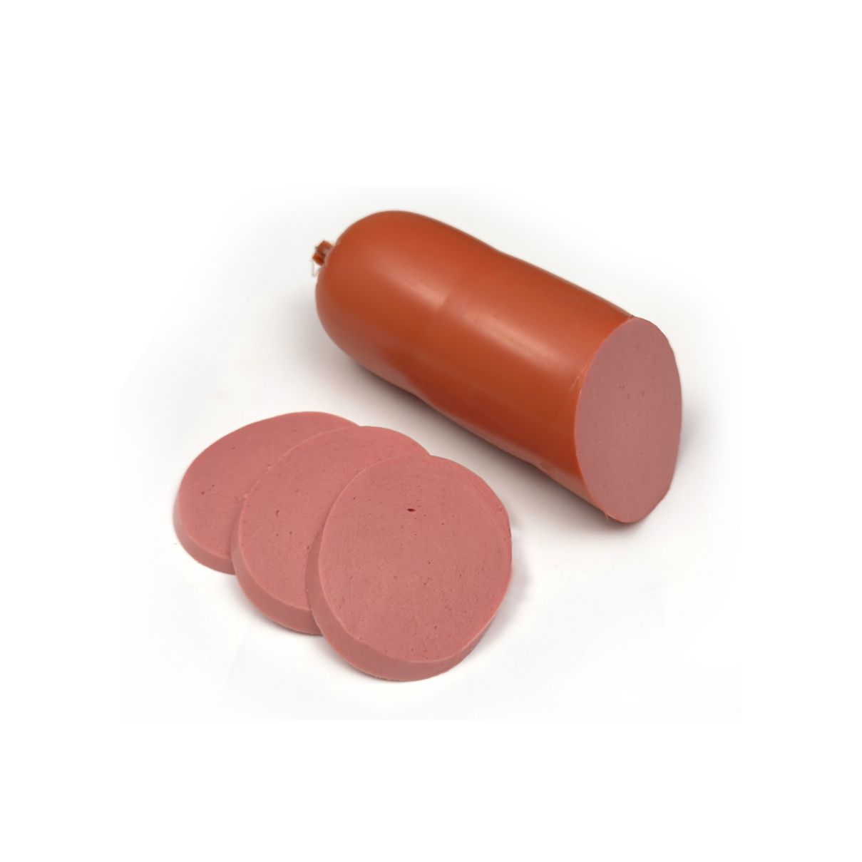 Состав: свинина, говядина, вода питьевая, яйцо куриное, молоко сухое, соль поваренная пищевая, специи и экстракты специй, сахар, стабилизатор Е450, фиксатор окраски–нитритно-посолочная смесь, усилитель вкуса и аромата Е621, краситель Е120.