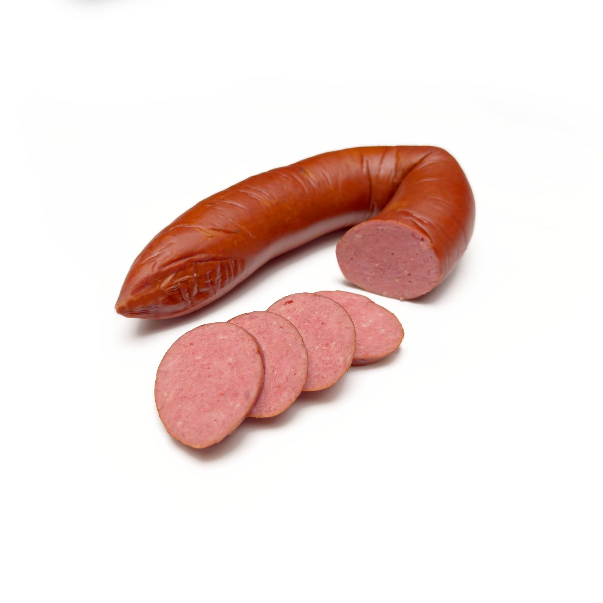 Коктейль из трёх видов мяса, смесь перцев. Фирменный рецепт. При изготовлении используется отборное сырье высшего сорта. Плотная мясная консистенция за счет говядины, ветчинный срез. Мусульманский продукт.