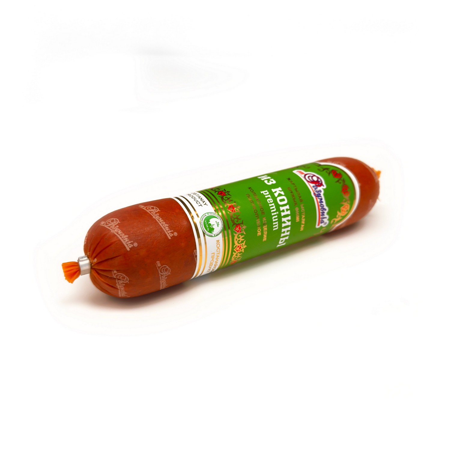 Очень сочная натуральная колбаса PREMIUM класса. При производстве этой колбасы особо пристальное внимание уделяется сырью. Используется только отборная охлажденная конина и говядина с минимальным количеством специй.