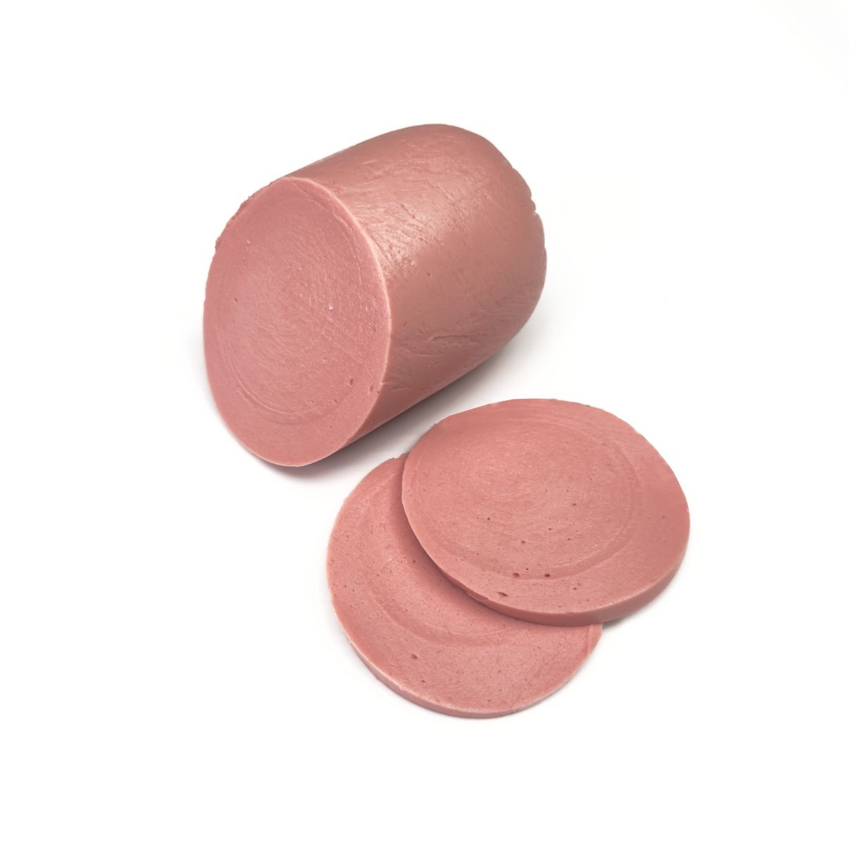 Состав: мясо кур, вода питьевая, растительный белок, крахмал картофельный, соль поваренная пищевая, сахар, специи и экстракты специй, стабилизатор Е450, фиксатор окраски–нитритно-посолочная смесь, загуститель Е407а, усилитель вкуса и аромата Е621, краситель Е120