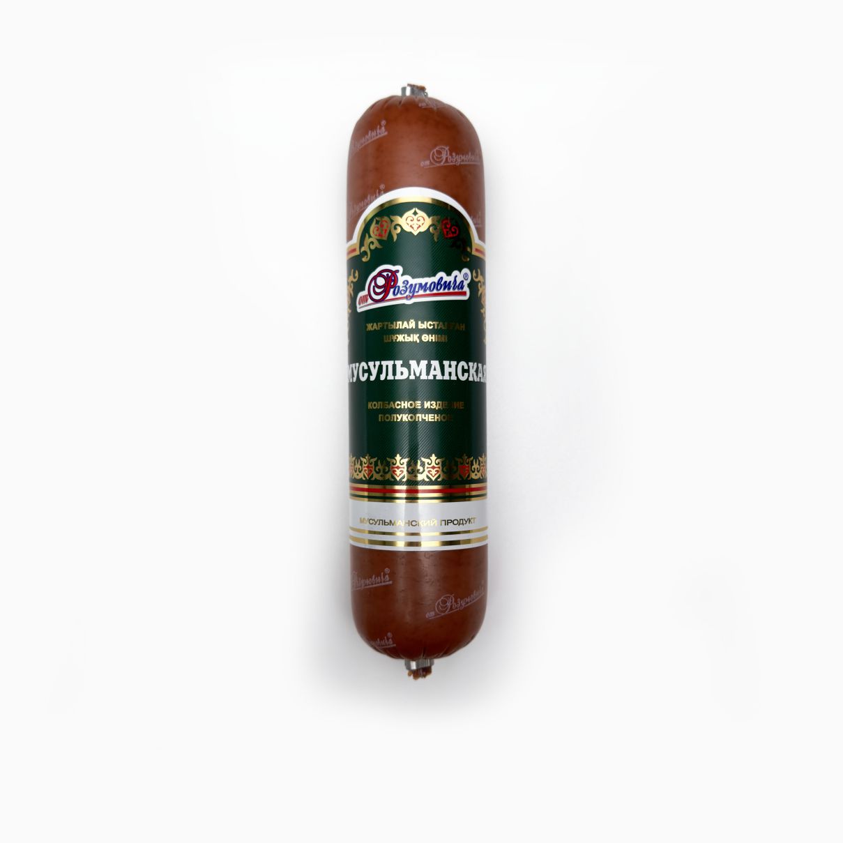 Мясной, мелкокусковой продукт. Сочная колбаса, имеет мраморную структуру на срезе. Аромат пряных восточных специй и душистого перца. Строгий контроль качества. Мусульманский продукт.