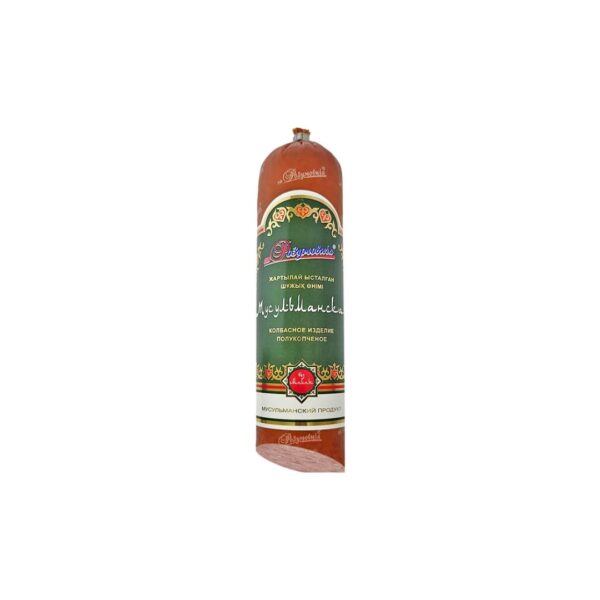 Мясной, мелкокусковой продукт. Сочная колбаса, имеет мраморную структуру на срезе. Аромат пряных восточных специй и душистого перца. Строгий контроль качества. Мусульманский продукт.