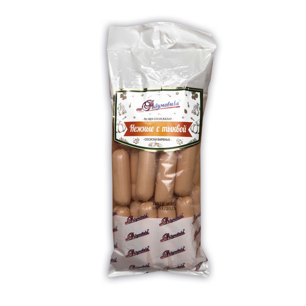 Продукт из мяса кур охлажденный. Сосиски «Нежные с тыквой» вареные. Высший сорт.