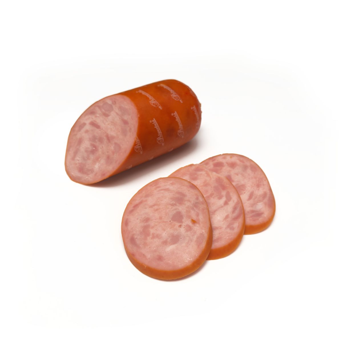 Нежная полукопченая колбаса из куриного филе, с добавлением восточных специй. Ветчинный срез.